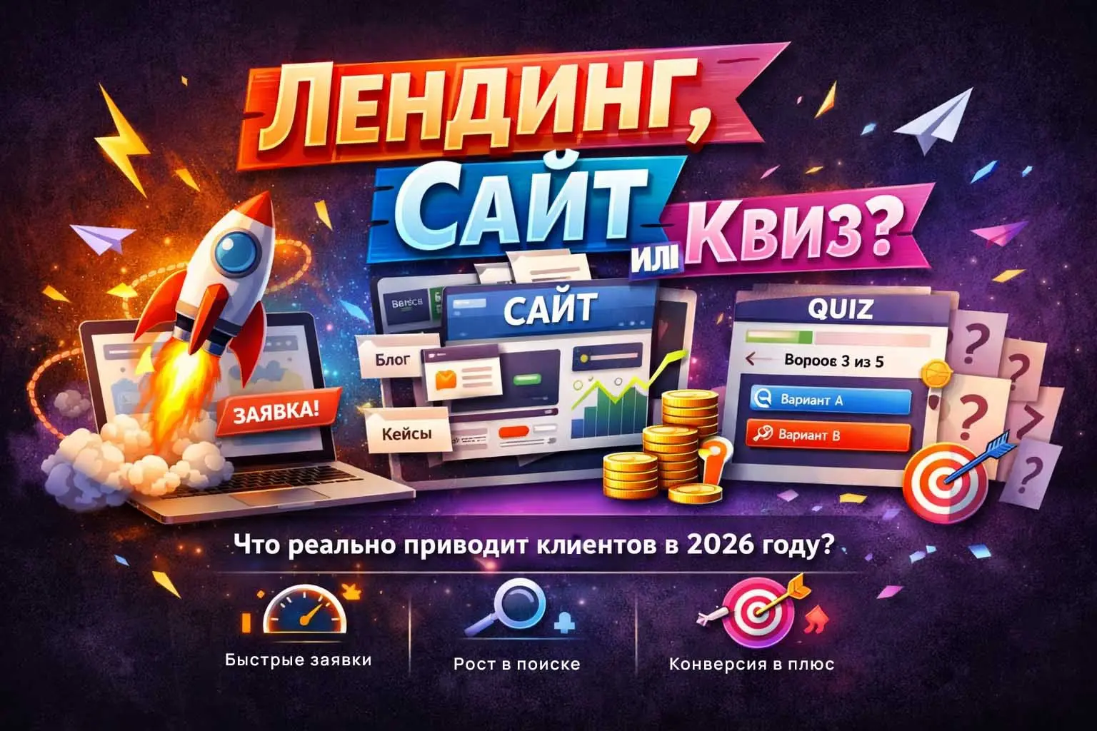 В 2026 году выбор между лендингом, многостраничным сайтом и квизом — это уже не вопрос «что лучше», а вопрос что подходит под вашу задачу, продукт и этап бизнеса.